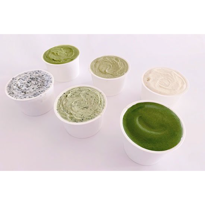 ●碾茶 種類別:アイスクリーム 無脱乳固形分:12.0% 乳脂肪分:11.5% 原材料名:牛乳、乳製品、砂糖、碾茶/安定剤(増粘多糖類)、乳化剤 栄養成分表示/エネルギー168カロリー タンパク質4.2g 脂質9.7g 炭水化物16.4g 食塩相当量0.1g